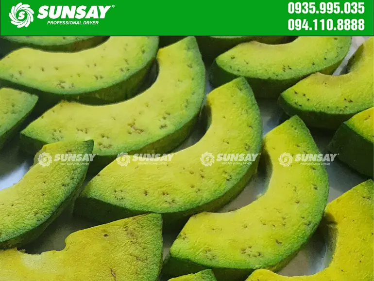 Nếu muốn sấy khô giòn mà không bị chảy tinh dầu bơ, kết cấu miếng bơ giữ nguyên như ban đầu, phần thịt khô, dễ vỡ thành bột mịn, đảm bảo màu sắc tươi như miếng bơ tươi thì cách tốt nhất chính là sấy thăng hoa.